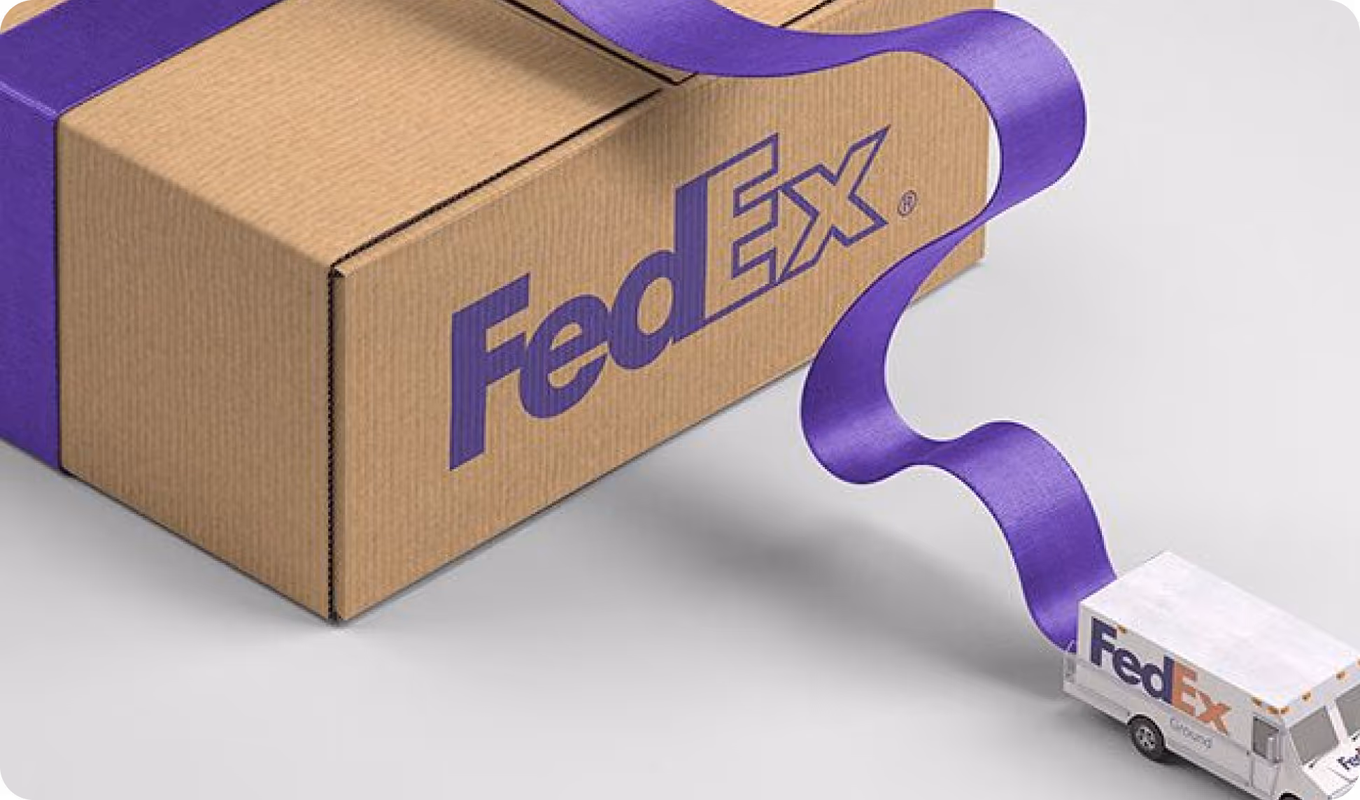 We created a visual system that reinforced FedEx's trusted brand. For the font, we used FedEx Sans in a variety of bold font types. For the colour palette, we stuck to purple and orange and used gradient colours. Colourful icons were designed, and the text colour was kept neutral in grey and black.